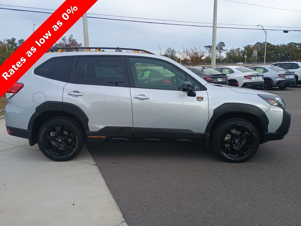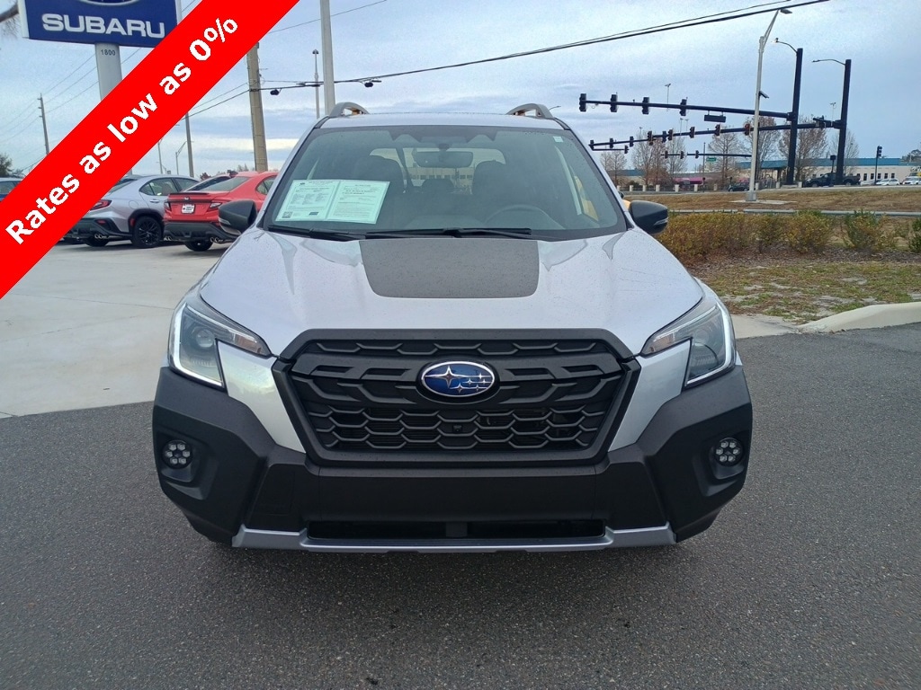 ***SUBARU CERTIFIED PRE-OWNED*** 2025 Subaru Forester Wilderness 2.5L 4-Cylinder DOHC. QUALIFIES FOR SPECIAL NEW CAR LOW RATES. Sunroof, Navigation, and Premium Audio. FREE LIFETIME POWERTRAIN WARRANTY WITH THE PURCHASE OF THIS VEHICLE. Clean CARFAX. 16V 4-Wheel Disc Brakes, 6 Speakers, ABS brakes, Air Conditioning, Alloy wheels, AM/FM radio: SiriusXM, Anti-whiplash front head restraints, Auto High-beam Headlights, Auto-Dimming Exterior Mirror w/Approach Light, Auto-Dimming Mirror w/Compass & HomeLink, Automatic temperature control, Brake assist, Bumpers: body-color, Cargo Sidewall Protector, Convenience Package, Driver door bin, Driver vanity mirror, Dual front impact airbags, Dual front side impact airbags, Electronic Stability Control, Emergency communication system: MySubaru Safety (3-year free trial), Exterior Parking Camera Rear, Four wheel independent suspension, Front anti-roll bar, Front Bucket Seats, Front Center Armrest, Front dual zone A/C, Front fog lights, Front reading lights, Fully automatic headlights, harman/kardon Audio & Power Rear Gate, Heated door mirrors, Heated Front Bucket Seats, Heated front seats, Illuminated entry, Knee airbag, Leather Shift Knob, Leather steering wheel, LED Upgrade, Low tire pressure warning, Navigation System, Occupant sensing airbag, Outside temperature display, Overhead airbag, Overhead console, Panic alarm, Passenger door bin, Passenger vanity mirror, Power door mirrors, Power driver seat, Power moonroof: Panoramic, Power Rear Gate, Power steering, Power windows, Radio data system, Radio: Subaru 8.0" Multimedia Navigation System, Radio: Subaru 8.0" Multimedia Plus System, Rear anti-roll bar, Rear Bumper Cover, Rear seat center armrest, Rear Seatback Protector - Wilderness, Rear window defroster, Rear window wiper, Remote keyless entry, Security system, Speed control, Speed-sensing steering, Splash Guards - Wilderness, Split folding rear seat, Spoiler, Standard Model, Steering wheel mounted audio controls, Tachometer, Telescoping steering wheel, Textured StarTex Upholstery, Tilt steering wheel, Traction control, Trailer Hitch, Trip computer, Turn signal indicator mirrors, Variably intermittent wipers, Wheels: 17" x 7.0 J Matte Black Finish Alum-Alloy, Wilderness Package.