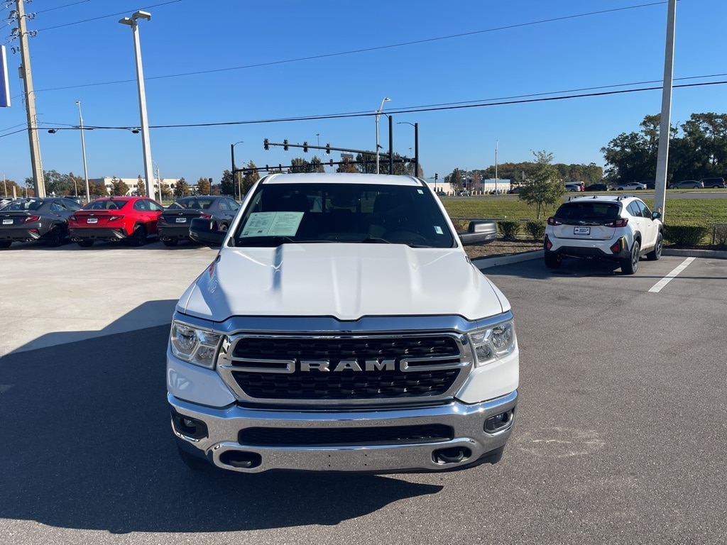 2nd Row In Floor Storage Bins, 3 Rear Seat Head Restraints, 3.21 Rear Axle Ratio, 33 Gallon Fuel Tank, 4 Way Front Headrests, 4-Wheel Disc Brakes, 48V Belt Starter Generator, 4G LTE Wi-Fi Hot Spot, 6 Speakers, 8.4" Touchscreen Display, ABS brakes, Air Conditioning, Alloy wheels, AM/FM radio, Apple CarPlay, Auto-Dimming Exterior Driver Mirror, Auto-Dimming Rear-View Mirror, Big Horn Badge, Big Horn Level 1 Equipment Group, Black Exterior Mirrors, Black Premium Power Mirrors, Bluetooth Handsfree Phone & Audio, Brake assist, Bumpers: chrome, Class IV Receiver Hitch, Cloth Bench Seat, Compass, Connectivity - US/Canada, Convex Wide-Angle Exterior Mirror Insert, Delay-off headlights, Driver door bin, Dual front impact airbags, Dual front side impact airbags, Electric Shift-On-Demand Transfer Case, Electronic Stability Control, Emergency communication system: SiriusXM Guardian, Exterior Mirrors Courtesy Lamps, Exterior Mirrors w/Heating Element, Exterior Mirrors w/Supplemental Signals, For Details, Visit DriveUconnect.com, For More Info, Call 800-643-2112, Front anti-roll bar, Front Center Armrest w/Storage, Front Fog Lamps, Front License Plate Bracket, Front reading lights, Front Seat Back Map Pockets, Front wheel independent suspension, Fully automatic headlights, Global Telematics Box Module (TBM), Glove Box Lamp, Google Android Auto, GPS Antenna Input, Heated door mirrors, Heated Front Seats, Heated Steering Wheel, Illuminated entry, Integrated Center Stack Radio, Integrated Voice Command w/Bluetooth, Leather steering wheel, Low tire pressure warning, Manufacturer's Statement of Origin, MOPAR Front & Rear Rubber Floor Mats, Occupant sensing airbag, Outside temperature display, Overhead airbag, Overhead console, Panic alarm, ParkView Rear Back-Up Camera, Passenger door bin, Passenger Sun Visor w/Illuminated Mirror, Passenger vanity mirror, Power door mirrors, Power steering, Power windows, Power-Folding Mirrors, Protection Group, Quick Order Package 23Z Big Horn, Radio data system, Radio: Uconnect 3 w/5" Display, Radio: Uconnect 5 W w/8.4" Display, RAM Grille Badge - Chrome, Rear 60/40 Folding Seat, Rear anti-roll bar, Rear Dome w/On/Off Switch Lamp, Rear Power Sliding Window, Rear seat center armrest, Rear step bumper, Rear Window Defroster, Remote keyless entry, SiriusXM Satellite Radio, Speed control, Split folding rear seat, Steering wheel mounted audio controls, Tachometer, Telescoping steering wheel, Tilt steering wheel, Tow Hooks, Traction control, Trailer Brake Control, Trip computer, USB Host Flip, Variably intermittent wipers, Voltmeter, Wheels: 18" x 8" Cast-Aluminum Painted, Wheels: 20" x 9" Aluminum Chrome Clad (WRK).
